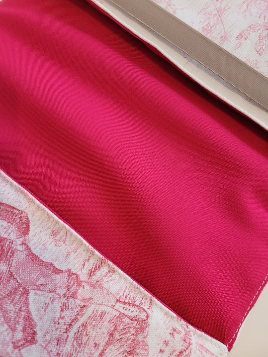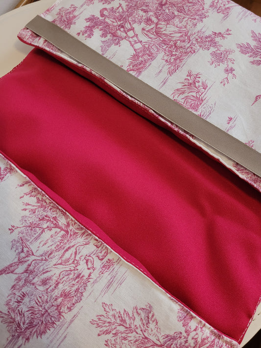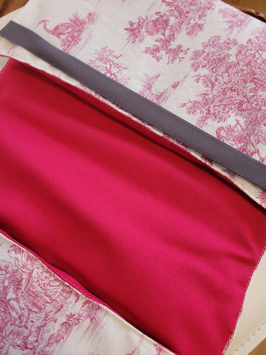 Couvre livre en tissu (livre broché) - Toile de Jouy rouge/framboise/argent