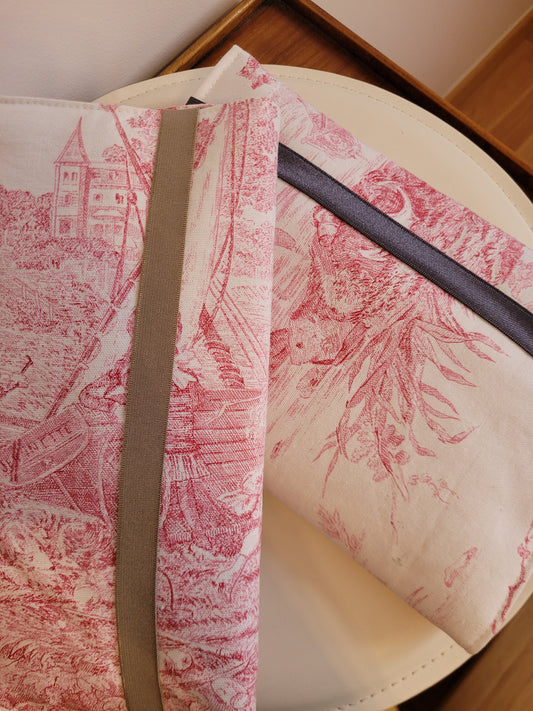 Couvre livre en tissu (livre broché) - Toile de Jouy rouge/framboise/doré