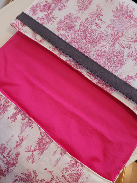 Couvre livre en tissu (livre broché) - Toile de Jouy rose/framboise/argent