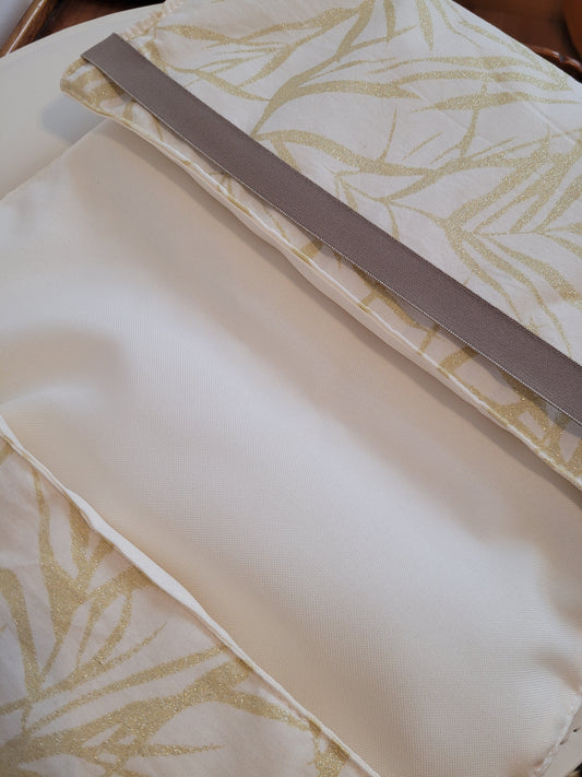 Couvre livre en tissu (livre broché) - Feuillage doré/écru/doré
