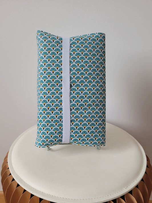 Couvre livre en tissu (livre broché) - Eventail turquoise et jaune