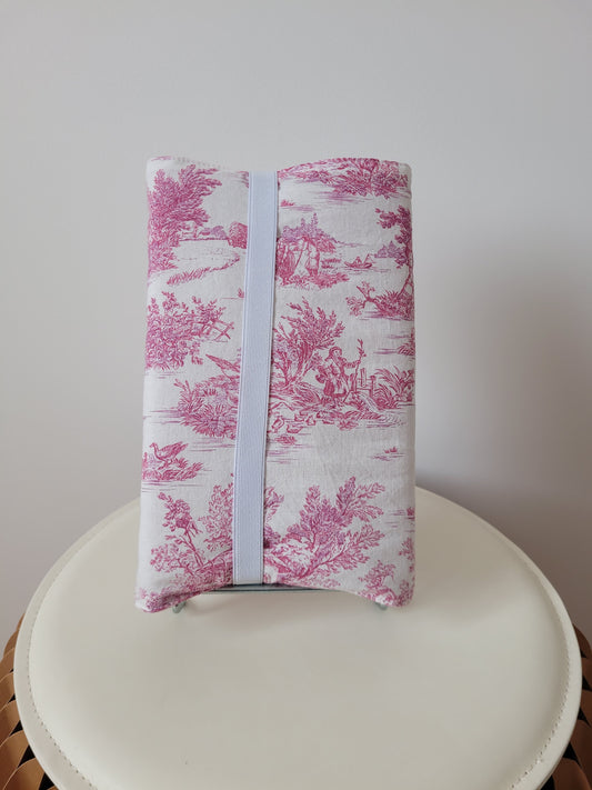 Couvre livre en tissu (livre broché) - Toile de Jouy rose