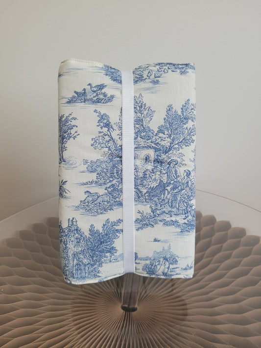 Couvre livre en tissu (livre broché) - Tissu toile de Jouy bleu