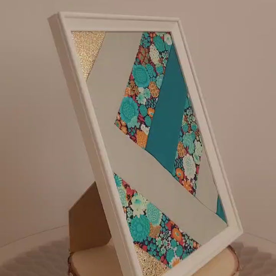 Tableaux textiles réalisés à partir de chutes de tissus aux imprimés floraux rétro